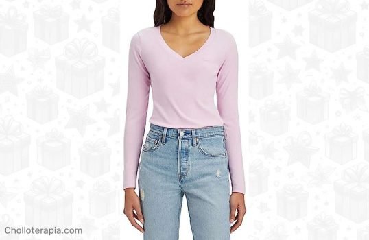 ¡No te pierdas esta oportunidad única! La camiseta Levi’s Long-Sleeve V-Neck Baby Tee en Pink Lavender es el toque de estilo que tu armario necesita. Con un descuento increíble del 50% por tiempo limitado, esta prenda de alta calidad puede ser tuya por solo 19,5€.